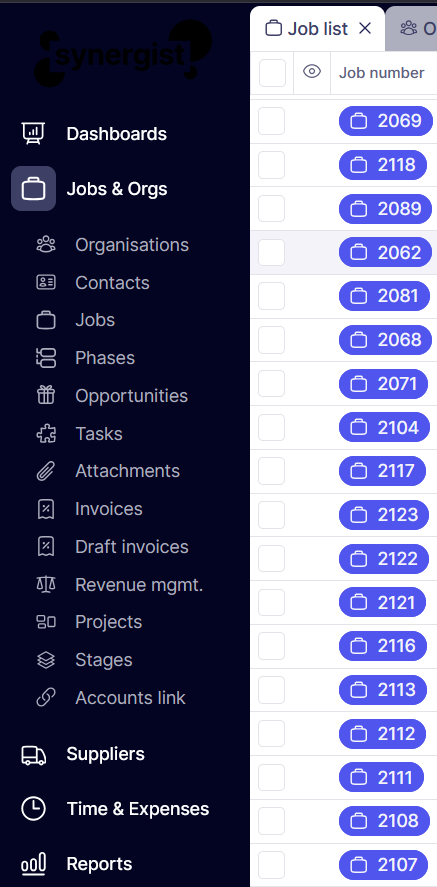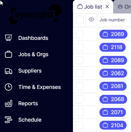 Note that only those areas of Synergist which you have access to will be displayed, so the appearance you see may differ from this.