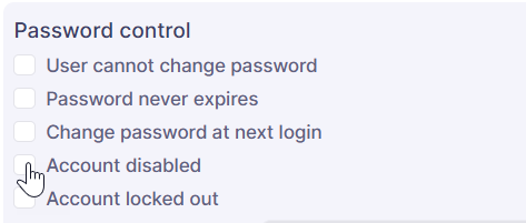 Once you have navigated your way to the user record, via the Tools & settings icon > File maintenance > users, you can simply tick the Account disabled box: