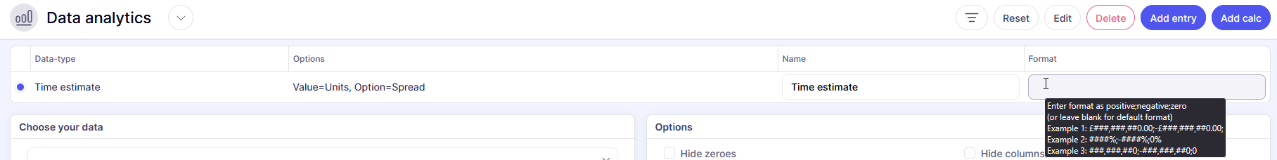 The boxes to the right of each data series can accept a format string to perform the following operations: