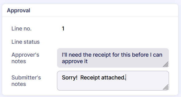 Once you have submitted your expenses, the lines can be approved, queried, put on hold or rejected.