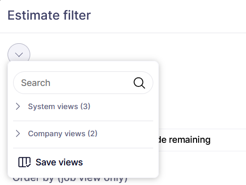 As is normal in Synergist, any screen that allows you to create a view also allows you to save views for use in the future. A views admin can save these for use by the whole company, or a user group, other users can save views for their own use only.