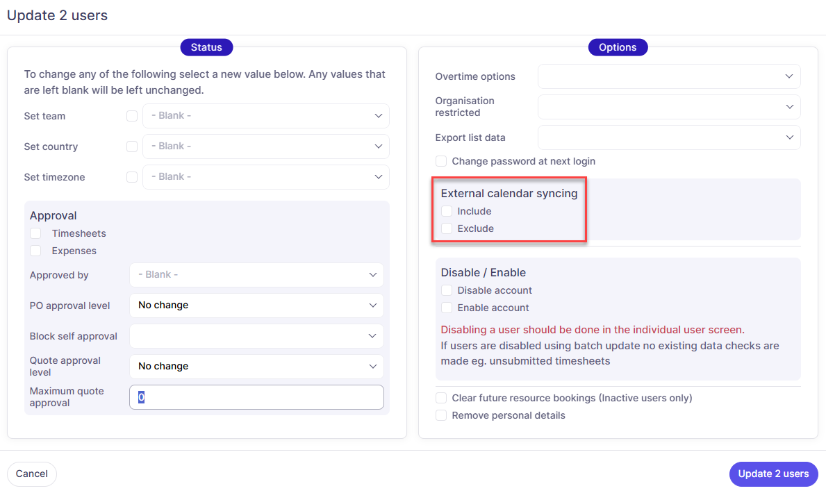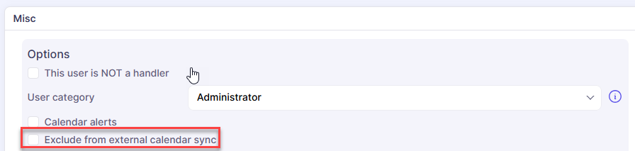 Not all user will benefit from, or want to synchronise their Synergist and Outlook / Google calendars. You can specify which users to include and which to exclude. This can be been piecemeal from individual user records: