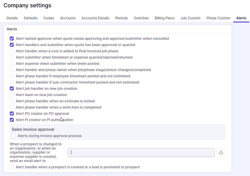 Any alerts configured to send messages to you will appear here. Alerts are mainly configured in company settings: