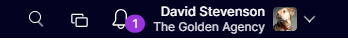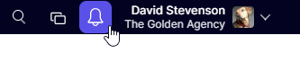 The notifcation center in Synergist is access by the bell icon near your user avatar: