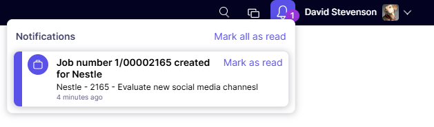 Clicking on the notification will open the record that the notification relates to, and will mark it as read.