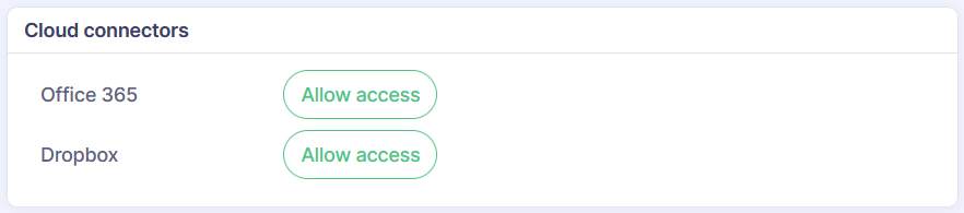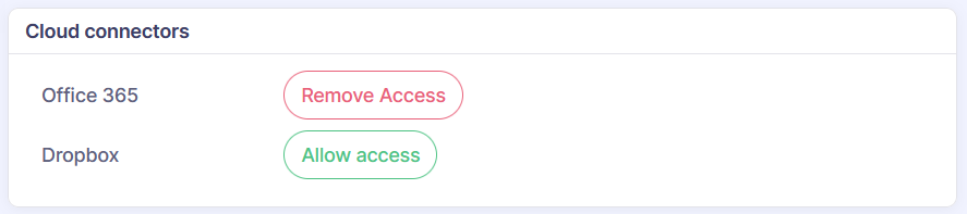 A new window will appear. Select the 'Allow Access' button for the required cloud storage service. You will be presented with a log-in screen from your cloud provider and will then need to grant access for the application. Once done the Allow access changes to Remove access and the relevant service will be available in the 'Select files from...' area. At any time you can open the Cloud file selector and remove access in the access area.