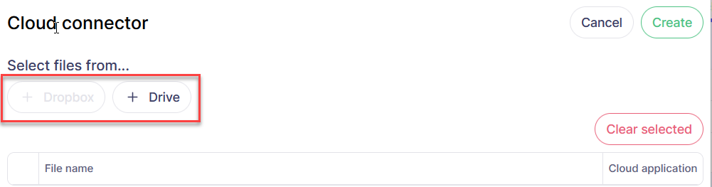 Choose which cloud provider to select the files from by clicking on the relevant button (see below).