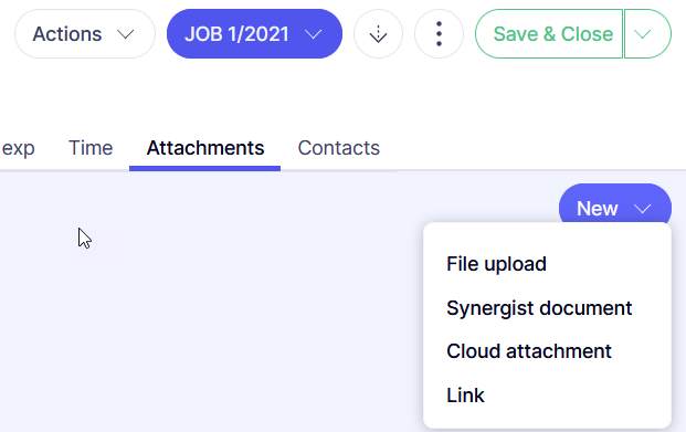 It can be useful to add URL hyperlinks to organisation, job and other records, for easy access to related websites or other resources on the internet. The Attachment tab now has an option to add a link. Click New > Link to open a simple input form.