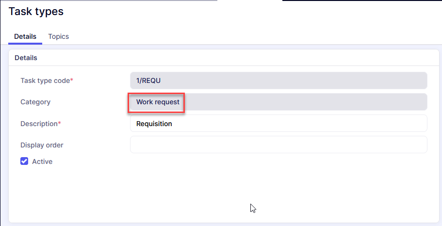 By default your system will be created with a single task type for use as requisitions, but you can add more through file maintenance if you wish.
