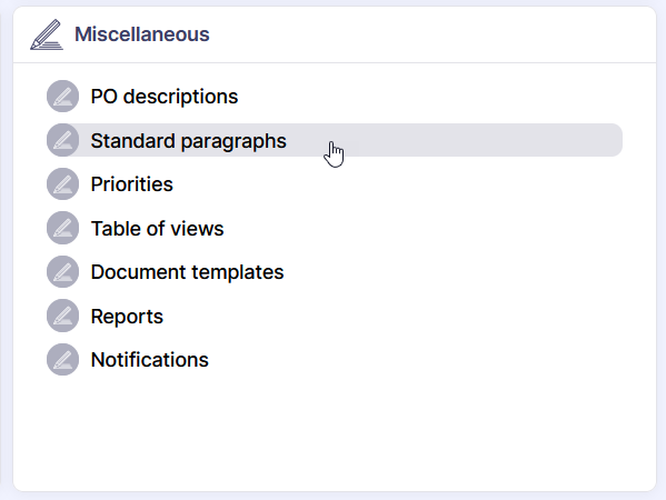 The set up for these can be found within the File maintenance section under Miscellaneous: