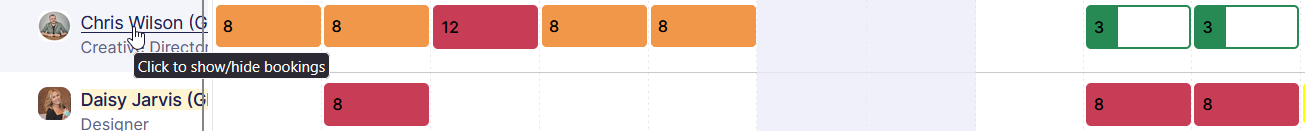 The actual bookings that make up the loading can be hidden by clicking on the resource in the left column: