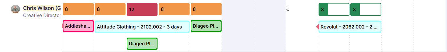 Bookings using an out of office charge code will display in grey and follow the same rules for displaying capacity in the thermometer.