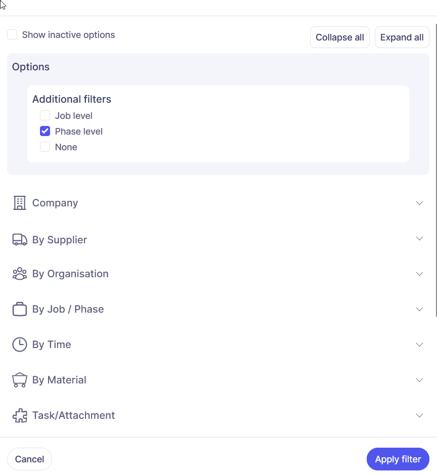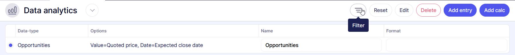 Once you have added your data type(s) you can apply filters. If you have multiple data types then ensure you have the radio button of the one you wish to filter selected: