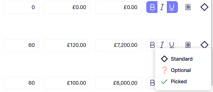 The total will only include values in the Amount column, allowing your client to clearly see what is included, what is optional and the value of each optional item.