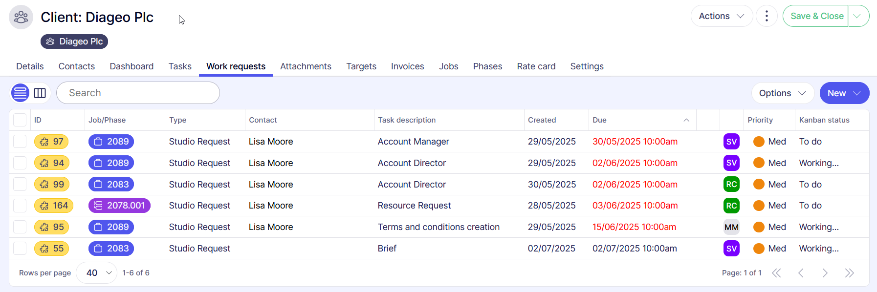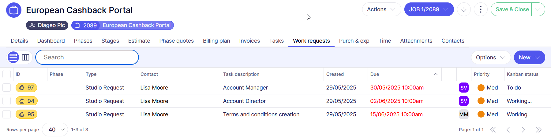 This is particularly helpful for filtering job types or task types, such as requisitions which are handled slightly differently. So your new filter will appear as a new tab in the relevant areas, such as job: