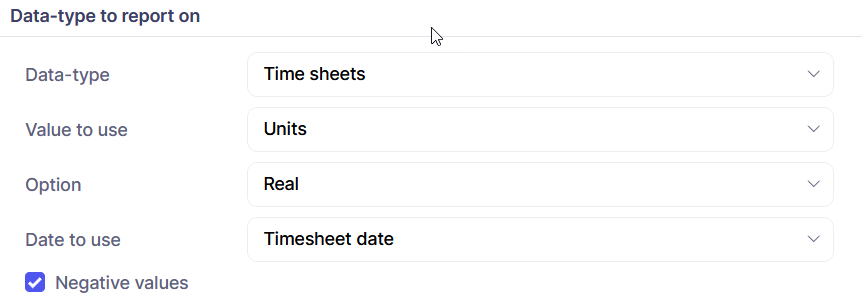 This removes the column called Data type and adds up all the numeric rows to give a single value for whatever you are reporting on. Obviously take care not to add apples and oranges - gross profit plus hours posted is not going to be meaningful. In order to subtract one value from another you need to first select which data series to be the negative by ticking the box indicated below when adding the new data series. Or you can turn it from positive to negative values after it has been added by editing the series: